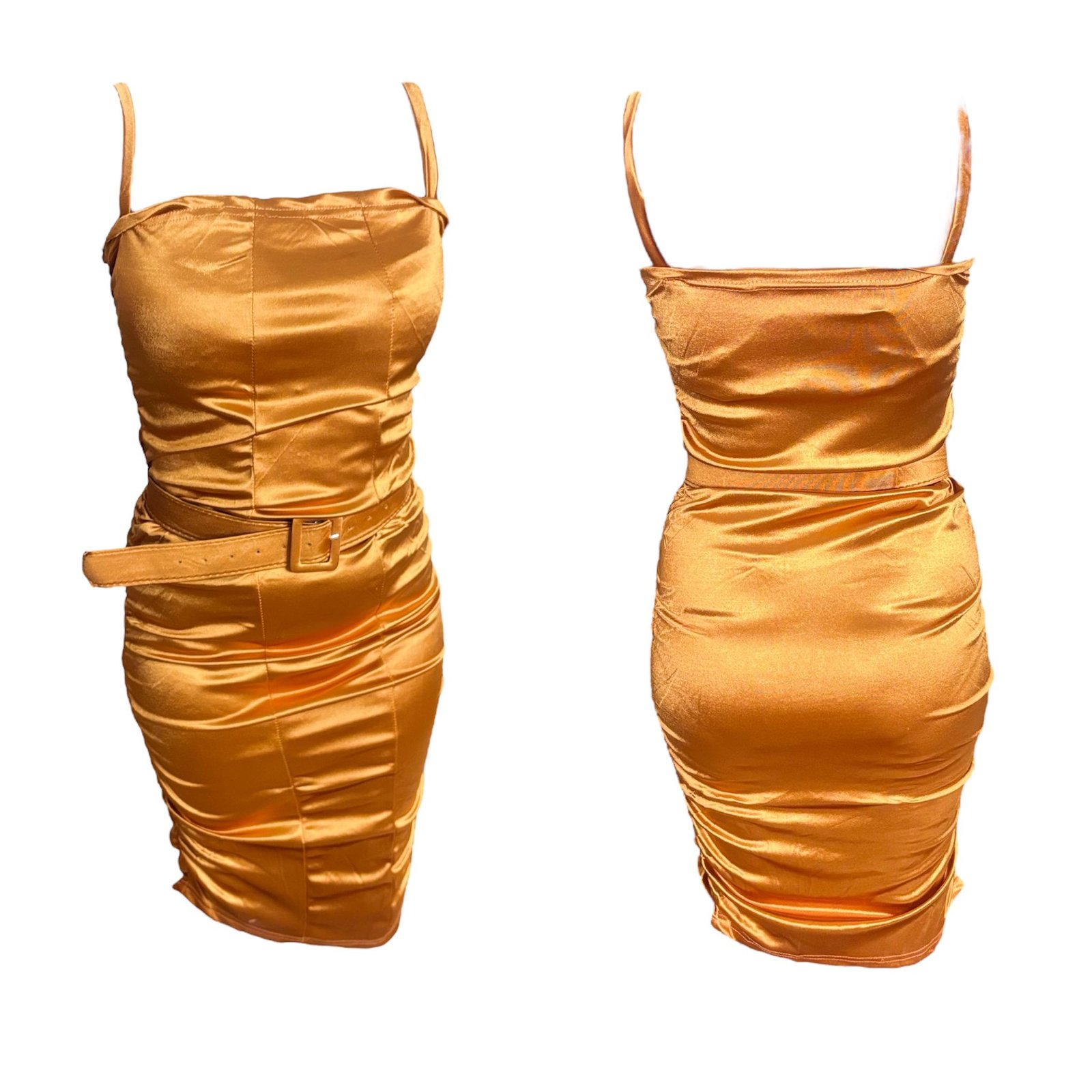 Shiny Color Women’s Bodycon Dress With Belt ( AM )